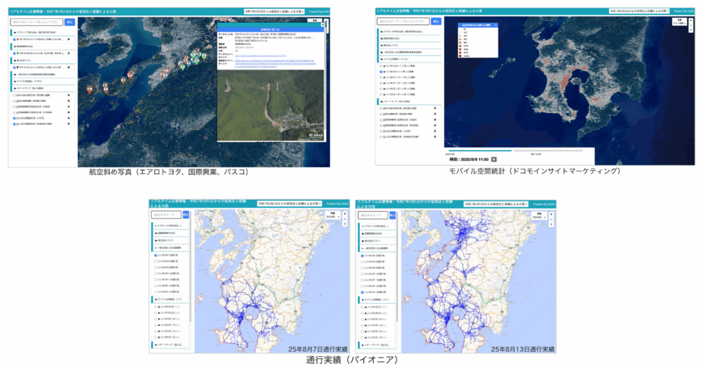 ・リアルタイム災害情報提供システムの災害モードが発令された「令和7年8月6日からの低気圧と前線による大雨」について、実災害時における基礎自治体としての活用の観点からシステムを利用し、機能改良案等の検討に着手した。
